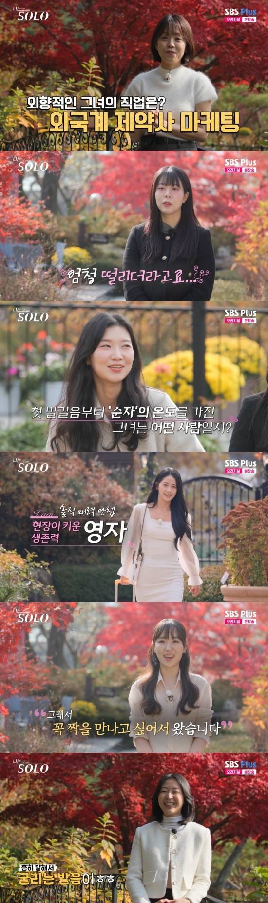 영자는 국내 대형 건설사에 재직 중이라고 밝혔다. 18기 영호가 회사 선배라고 밝힌 그는 "공사장 현장에서 일하고 있다. 건설 현장의 관리감독자로 재직 중이다. 순환근무라 사람 만나기가 쉽지 않다. 소개팅도 100번 가까이해봤는데 잘 안 됐다"고 털어놨다.