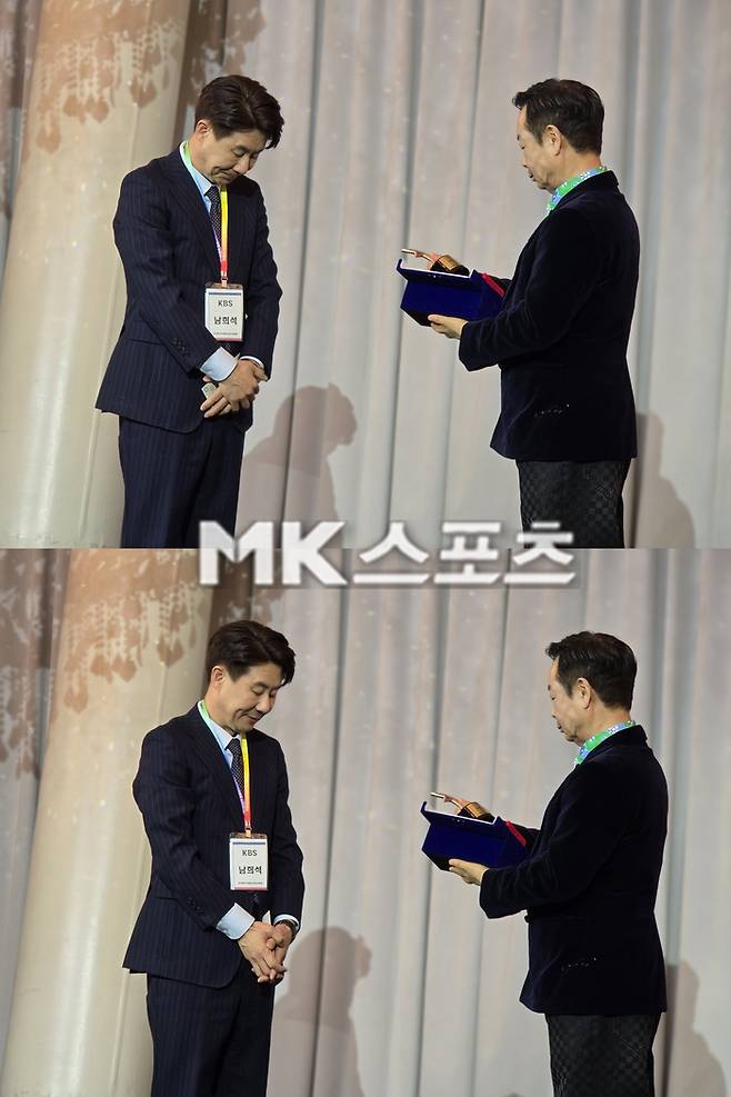 이어 남희석이 ‘올해의 코미디언’으로 언급되며 동료들의 따뜻한 박수와 환호를 받았다. 남희석은 객석에서 환한 미소로 화답하며 훈훈한 분위기를 더했다.