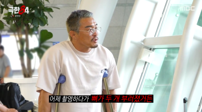 이날 기안84는 극한 크루로 추성훈과 권화운이 합류했다. 그러나 대망의 출국날, 추성훈은 목발을 짚고 나타나 모두를 깜짝 놀라게 했다. 그는 “어제 촬영하다가 뼈가 두 개 부러졌다. 제트 스키 타다가 이상하게 넘어져서 걸려가지고”라고 밝혔다.
