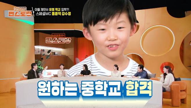 지난번 출연 당시 학생 회장이었던 제민 군. 강수정은 "자랑을 하면 좀 그렇지만, 명문 중학교에 시험을 봐서 합격했다"며 아들 자랑에 환하게 웃었다.