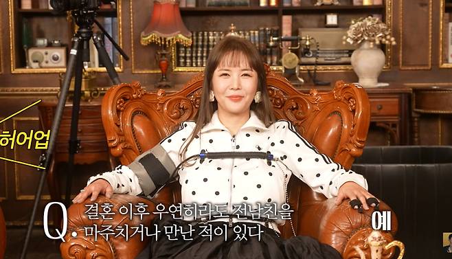 영상에서 장영란은 "결혼 이후 우연이라도 전남친을 마주치거나 만난 적이 있다"는 질문에 '네'라고 답했다. 이어 "만난 게 아니라 마주쳤다"고 선을 그으며 당시 상황을 설명했다.