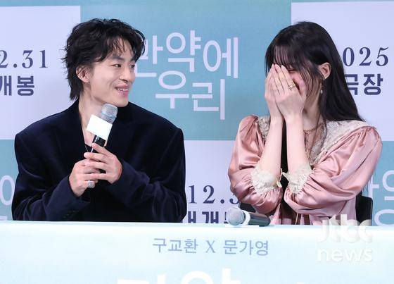18일 오후 서울 CGV 용산 아이파크몰에서 영화 '만약에 우리' 언론시사회 및 기자간담회가 열렸다. 현장에는 김도영 감독과 배우 구교환, 문가영이 참석해 자리를 빛냈다.