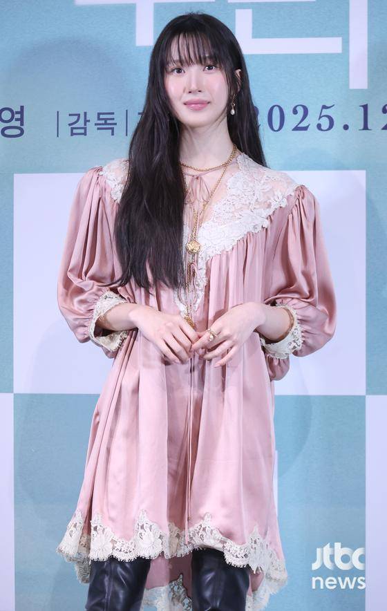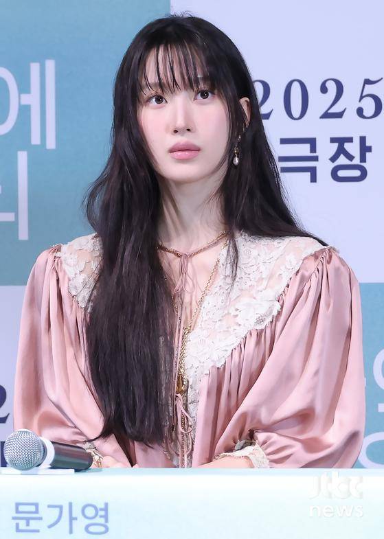 이날 문가영은 핑크빛 드레스를 입고 등장해 단번에 시선을 사로잡았다. 기자간담회 내내 차분한 분위기 속에서도 또렷한 이목구비가 돋보이며, 영화 속 정원 캐릭터를 떠올리게 하는 '첫사랑 비주얼'로 현장을 밝게 물들였다. 롱 웨이브 헤어스타일로 특유의 청순한 매력을 더했다.