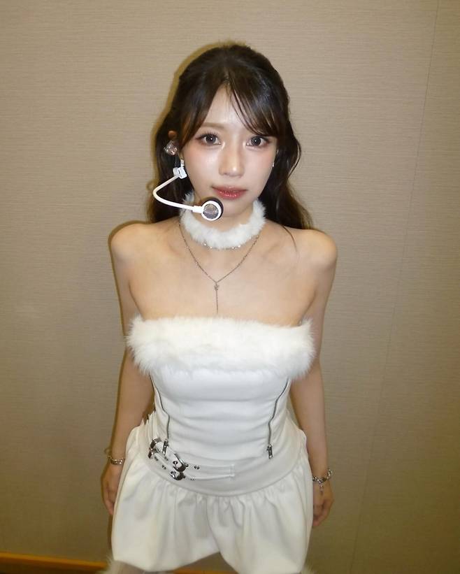 이미주는 20일 자신의 사회관계망서비스(SNS)를 통해 전날 개최된 가요 결산 축제 현장에서 찍은 여러 장의 사진을 게재했다. 사진 속 이미주는 화이트 컬러의 튜브톱 미니 드레스를 입고 다채로운 포즈를 취하고 있다.