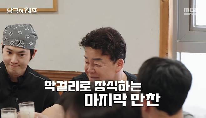 이후 마지막 식사 메뉴를 고민하는 백종원, 임수향, 수호, 채종협. 수호의 아이디어로 마지막 메뉴가 결정됐다. 바로 비빔밥. 여러 나라가 화합하고, 대원들 역시 남극에서 만나 서로 어우러져 지내야 하는 곳이기 때문. 총 10가지의 비빔밥 재료가 완성됐고, 세팅까지 완료했다. 거기다 막걸리도 준비되어 있었다.