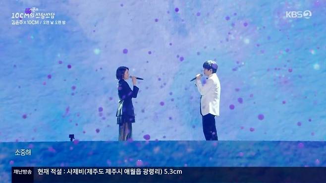 이날 방송에는 옥상달빛 김윤주가 출연, 남편 권정열과 듀엣 무대를 선보였다. 부부가 '더 시즌즈'에서 함께 무대에 오른 것은 이번이 처음이다.