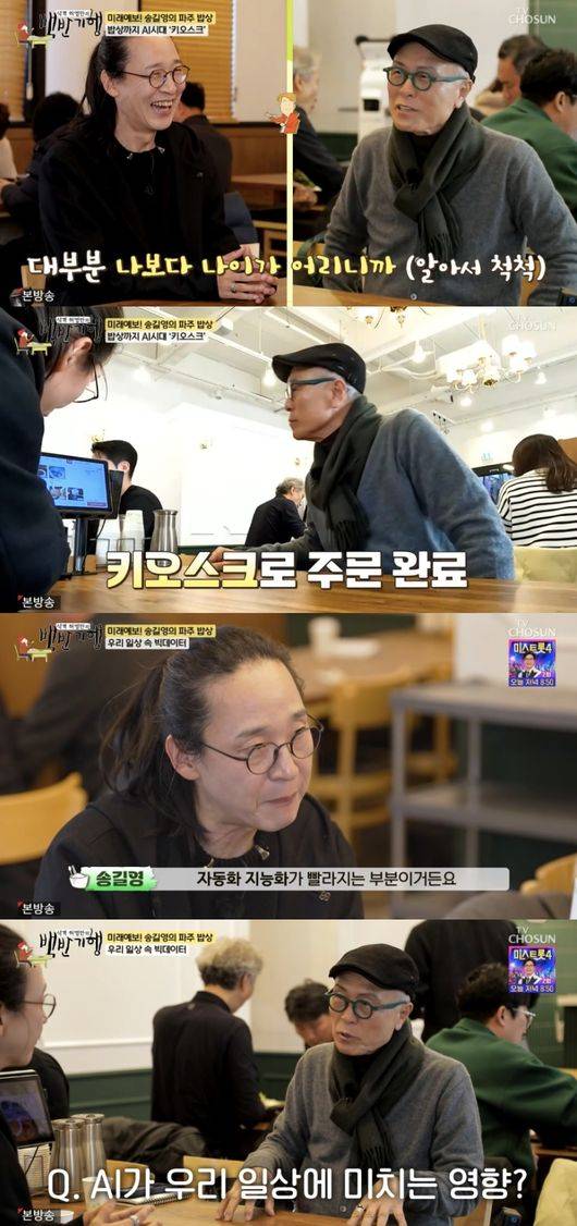 한편, 송길영은 허영만이 AI에 관심을 드러내자 “AI에게 물어보면 바로 답을 준다. 제가 보여드리겠다”라며 휴대전화를 통해 AI에게 “’백반기행’ 창원편 복어요리점 이름이 뭐야?”라고 물었다.
