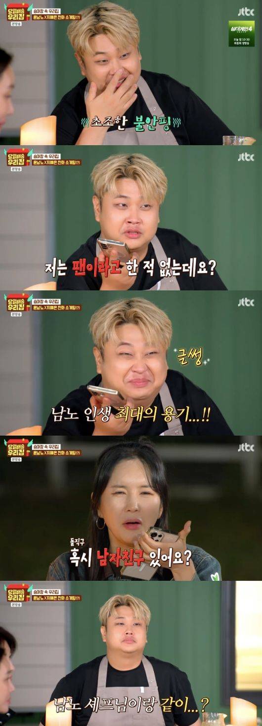 윤남노의 전화를 받은 지예은은 “아직까지 팬인 줄 몰랐다”라고 말했고, 윤남노는 “저는 팬이라고 한 적 없다”라며 용기를 냈다. 장영란과 가비는 눈시울이 붉어진 윤남노를 보며 “진짜 운다”라며 리얼한 반응에 놀랐다.