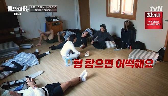 이어 헬수저 게임이 기다리고 있었다. 풍선을 빨리 터트리는 폐활량 테스트로, 첫 번째로 한 백호가 25초를 달성하자 멤버들은 백호만 이기자고 힘을 모았다. 그러다 추성훈은 손을 쓰는 반칙을 했고, "난 안 했다"고 뻔뻔하게 말했다. 충신 허경환은 "전혀 손을 사용하지 않았다"며 추성훈의 편을 들어 웃음을 안겼다. 이어 허경환까지 손을 쓰려고 시도했지만, 뜻대로 되지 않았다.