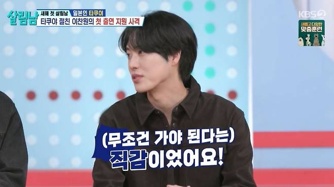 이어 타쿠야는 '살림남' 합류를 앞두고 이찬원에게 전화를 걸어 조언을 구했고, 이찬원은 "캐릭터가 중요한 것 같다"라며 박서진과 여동생의 케미를 언급하며 캐릭터의 중요성을 강조했다. 이찬원은 "형은 한국에 혼자 사니까 케미를 보여주기는 힘든 상황 아니냐"라며 나가서 인지도 테스트를 해보라고 제안했다.