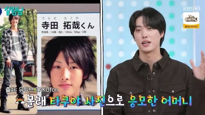 처음엔 고시원에 살았단 타쿠야는 "(공짜) 밥, 김치가 있어서 그걸로 밥을 먹었다. 다른 멤버들은 여기 집이 있고, 엄마 카드가 있지 않냐. 난 어떻게 살았는지 모르겠다"고 회상했다.