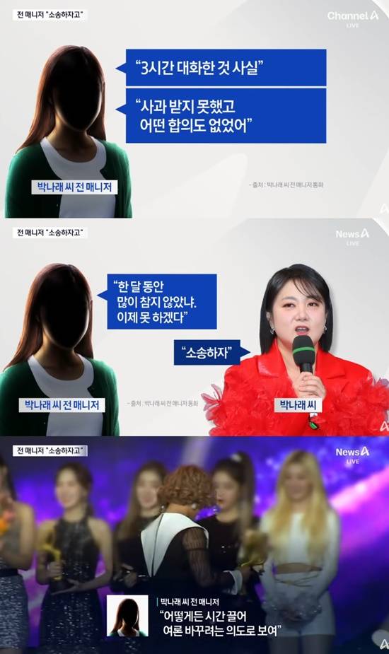 9일 채널A 뉴스에서는 박나래가 전 매니저들과 합의가 아닌 갈등이 지속되고 있다고 보도했다.