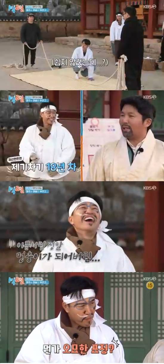 김종민은 주종목인 엽전 제기차기 미션에 걸리며 자신감을 드러냈지만 실패해 당황했다. 조세호는 김종민의 실패로 짜증이 폭발한 나머지 포효했다.