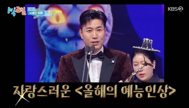 제작진은 "지금 촬영분이 '연예대상' 다음 날 방송된다. 참고로 말씀드리면 김종민 씨는 대상 후보에 들었다"고 알렸고, 멤버들은 축하를 건넸다. 김종민은 지난 20일 열린 '2025 KBS 연예대상'에서 '올해의 예능인상'을 수상했다.
