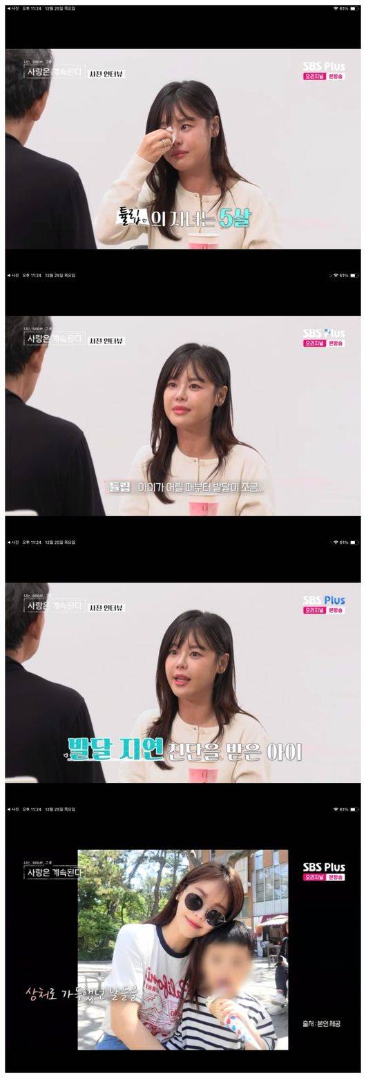 튤립은 “살면서 겪어보지 못한 경험을 겪으면서, 정말”라면서 눈물을 흘렸다. 그는 “아이가 다섯 살인데, 발달이 좀 늦었다. 네발 걷기도 늦고, 말도 늦었다. 발달 지연 판정을 받았다. 심각한 건 아닌데 치료를 하면서 보자고 했다. 언어 치료 다니고 있고, 어린이집 갔다가 센터를 간다. 괜찮을 것 같다고 하더라”라고 말했다.