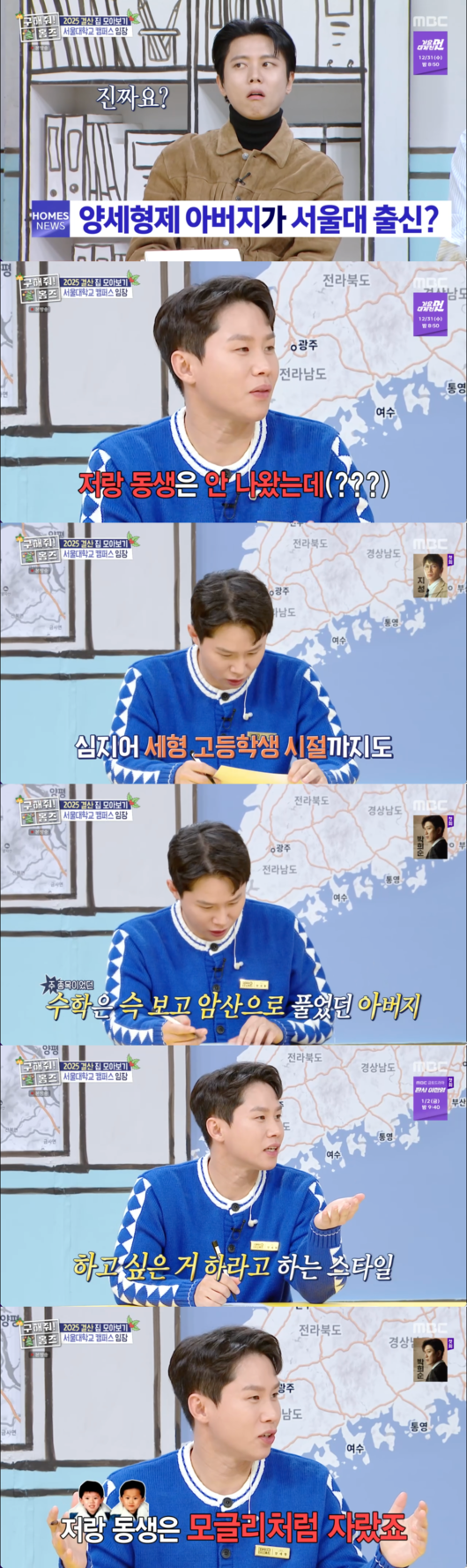 [OSEN=박근희 기자] '구해줘! 홈즈’ 개그맨 양세형이 아버지가 서울대 출신이라는 놀라운 반전 집안 내력을 공개해 화제다.