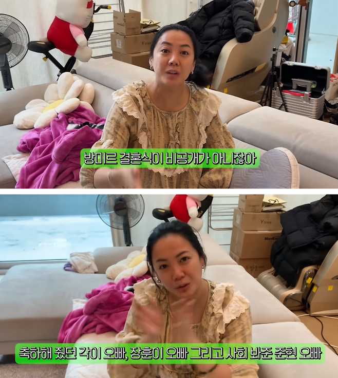 미르 측은 영상에서 "결혼식은 비공개가 아니었고, 어디에서도 비공개라고 말한 적이 없다"며 "기자들이 오지 않은 것은 신부가 일반인이라 배려 차원에서 취재를 자제했기 때문으로 보인다"고 설명했다. 또 "결혼식이 조용히 지나갈 뻔했는데, 오히려 김장훈 덕분에 알려진 측면도 있다"고 김장훈을 향해 미안함과 고마움을 전했다.