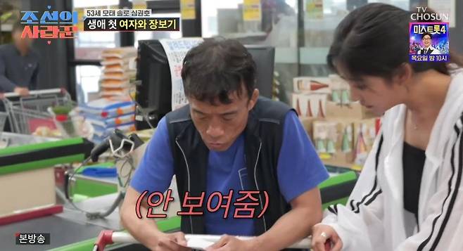 드디어 마트에 도착한 심권호는 인생 최초로 여성과 단둘이 장을 보게 됐다. 심권호는 "같이 가자"는 김가란을 등지고 장보기 메모에 적힌 내용물을 찾아 마트를 누볐다.