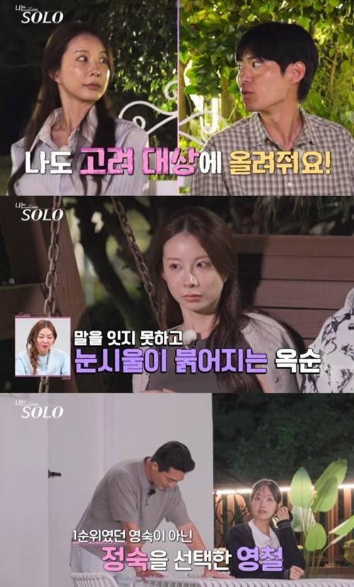 상철은 종합비타민, 손편지 등을 들고 옥순을 찾아갔다. 하지만 옥순은 “제 1순위가 상철 님은 아니게 됐다”며 거절해 상철을 허탈하게 만들었다. 뒤이어 광수도 불러낸 옥순은 “제 1순위는 정해졌지만, 광수님은 아니다”라고 털어놨다.
