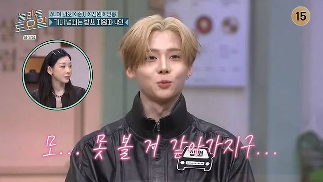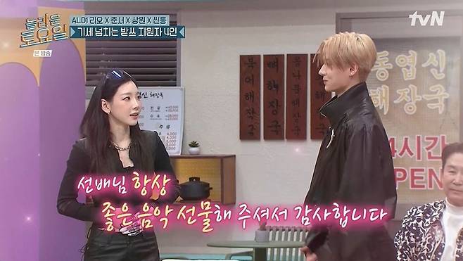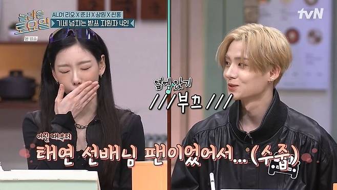 상원은 옆자리를 피하고 싶은 사람이 있었다고. 상원은 "어릴 때부터 태연 선배님 팬이었다"고 고백했다. 상원은 '아이(I)', '파인(Fine)'부터 수록곡까지 읊으며 찐팬임을 입증했고, "못 볼 것 같아서 (옆자리를 피하고 싶었다)"고 이유를 밝혔다.