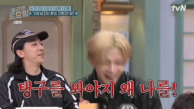 상원은 태연에게 한마디하란 말에 벌떡 일어났다. 상원은 붐의 요청에 태연에게 다가가 "항상 좋은 음악 선물해 주셔서 감사하다"고 했지만, 정작 태연이 아닌 넉살을 쳐다봐 웃음을 안겼다. 넉살은 "왜 여길 보냐. 왜 날 보고 그러냐"고 밝혔다. 상원은 다시 한번 태연을 보고 팬심을 전했고, 멤버들은 "상원이 이런 모습 처음 본다"고 제보했다.