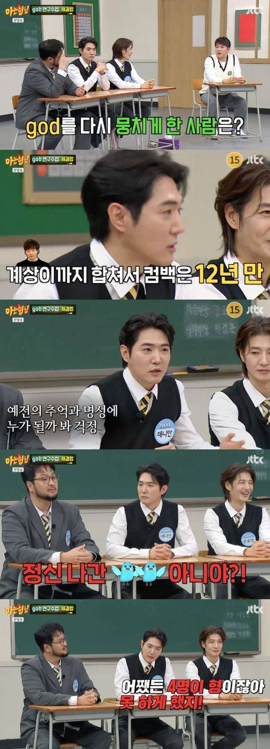 이후 이들은 재결합 계기에 대해 이야기했다. 손호영은 “가장 적극적으로 모이자고 한 게 태우였다. 제일 애썼다”라고 말했다. 김태우는 “전역하면 god를 모으고 싶었다”라고 덧붙였다. 데니안은 “실질적인 리더는 태우였다. 어렵게 우리 멤버들을 찾아다니면서 하자고 했다. 계상이까지 합쳐서 컴백은 12년 만이었다”라고 말했다.
