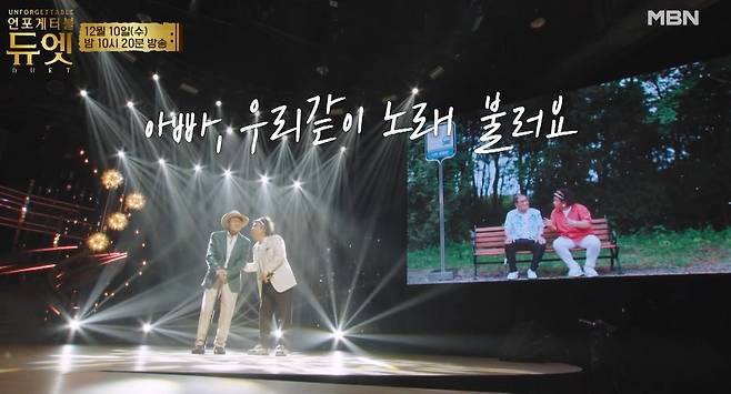 [TV리포트=김해슬 기자] 코미디언 오정태가 아버지의 치매 판정 후 느꼈던 감정을 고백한다. 오는 10일 방송되는 MBN '언포게터블 듀엣'에는 오정태와 85세 아버지 오태웅이 등장해 아버지의 치매 판정 후 달라진 부자지간 일상을 공개한다. 또 메모리 싱어로 대한민국 대표 보컬리스트 김태우가 출격해 두 사람만을 위한 감동적인 노래를 선사한다.