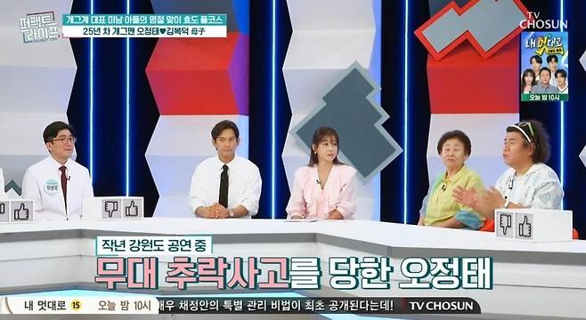앞서 TV조선 '퍼펙트 라이프'에는 오정태와 그의 부모님이 등장해 건강 상태에 대해 언급했다. 오정태 어머니는 "어디를 가시냐?"는 제작진 물음에 "(남편이) 치매 학교에 다닌다. 작년에 치매에 걸렸다"고 밝혔다. 또 어머니는 남편을 향해 "아주머니들이랑 싸우지 말고 선생님 말씀 잘 들어라"라고 남편을 살뜰하게 챙겼다.