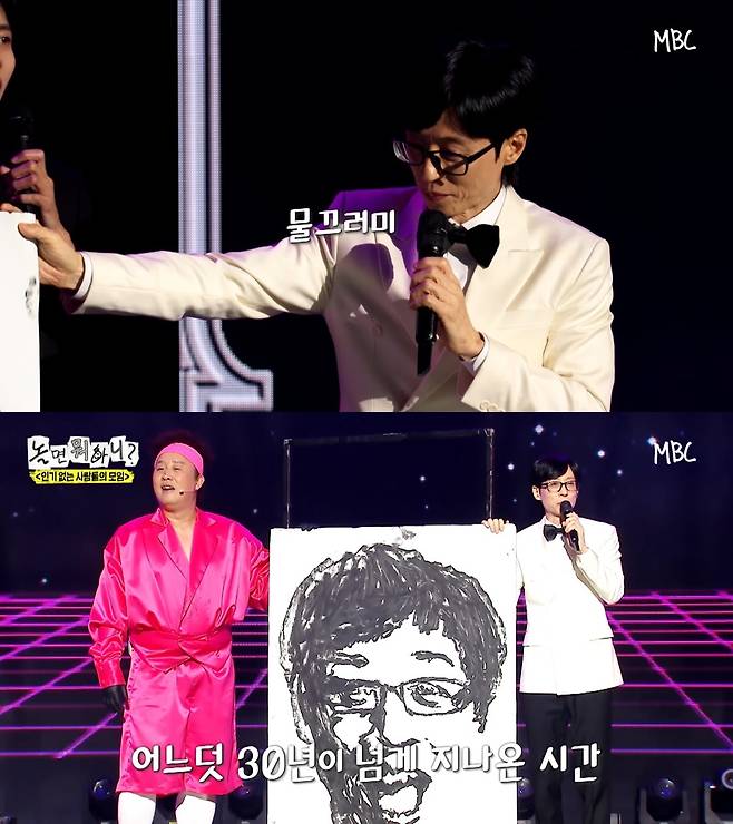 사람의 얼굴을 거꾸로 뒤집힌채 채워 넣는 독특한 방식으로 만들어 나가는 정준하의 행동 하나 하나에 팬들은 숨 죽이며 기다렸다. 이내 형체가 잡힌 그림을 보고 유재석임을 알게된 팬들은 탄성을 터뜨렸고 몇몇 시청자들은 눈물을 흘리기도 했다.