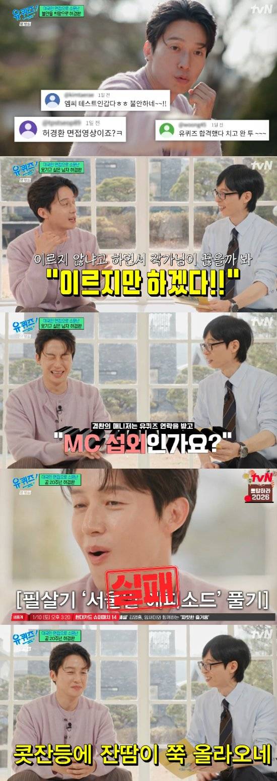 허경환, '유퀴즈' MC 면접 망했나..."흐름 안 좋아" 당황 [전일야화]