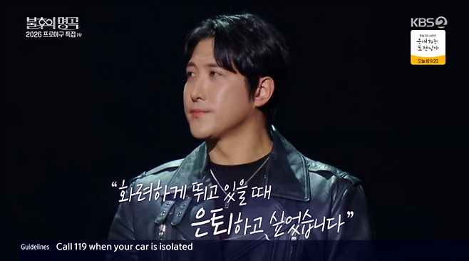 (MHN 장혜원 기자) 10일 방송된 KBS 2TV '불후의 명곡' 739회에서 '2026 프로야구 특집'이 전파를 탔다. 이버 특집은 국내 프로 스포츠 최초 1200만 관중 돌파라는 대기록을 기념하며, 오는 3월 2026 프로야구 개막을 앞둔 팬들에게 만루홈런급 웃음과 감동을 선사했다. 김병현, 박용택, 이대형, 정근우, 황재균, 유희관, 최주환, 김태연, 전사민 , 임준형 등 전현직야구 스타 10인이 출격해 '불후의 명곡' 트로피를 향한 치열한 승부에 나섰다.