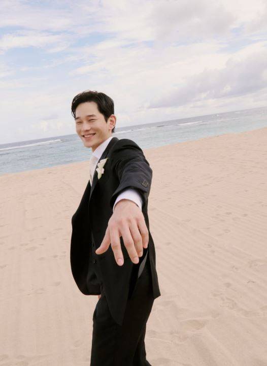 공개된 사진에는 푸른 바다를 배경으로 한 해변에서 행복하게 미소짓는 두 사람의 모습이 담겼다.