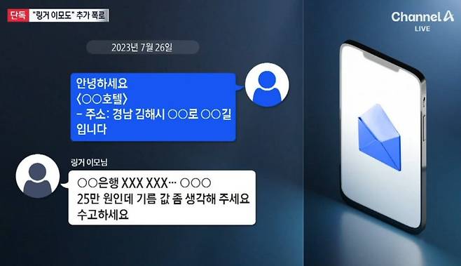 A씨는 "방송 촬영 후 박나래가 김해의 한 호텔에서 처음 보는 사람에게 링거를 맞은 적이 있다"면서 "링거이모는 의사가운도 입지 않고 일상복 차림이었으며 주사이모와는 다른 인물이었다"라고 설명했다. 링거이모와 출장비용을 협의하는 대화도 나눴다며 캡처본도 공개했다.