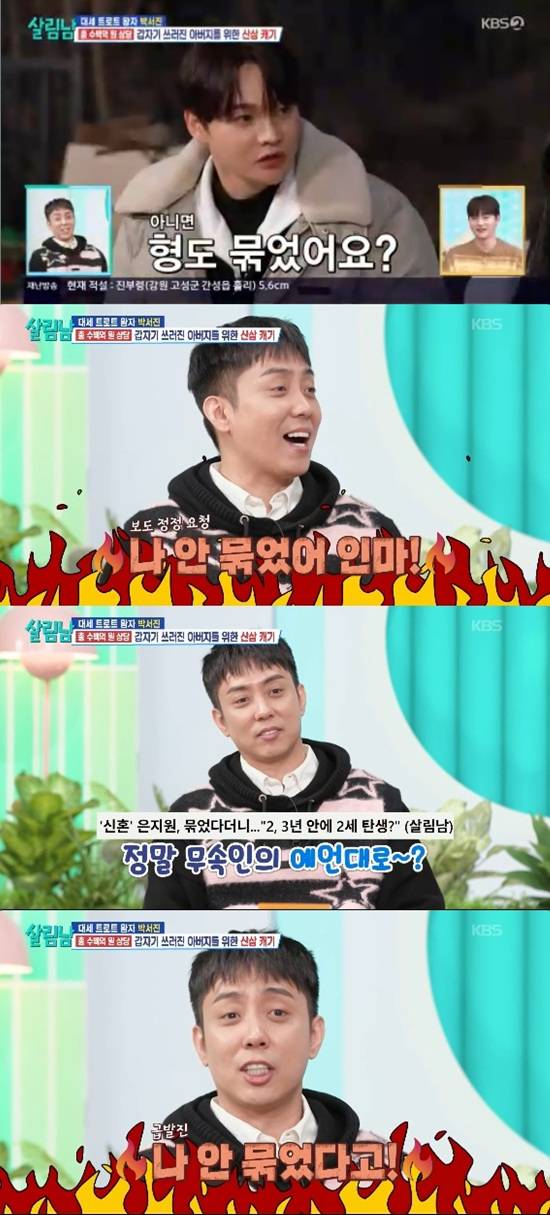 박효정은 신승태에게 "애가 있어요?"라고 물어봤고 신승태는 당황했다. 박서진은 신승태를 향해 "형도 묶었느냐"라고 물어봤다.