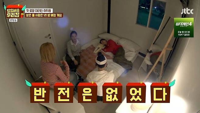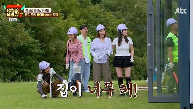 설레는 마음으로 집 언박싱을 하는 멤버들. 장영란은 "왜 창문이 없냐"고 놀라며 하지원을 불렀다. 다행히 창문을 발견했지만, "너무 작아. 안에 아무것도 없다"라고 더욱 놀랐다. 가비는 "언니가 시킨 거 맞냐"고 했고, 실물을 처음 확인한 하지원 역시 "어머. 이만해?"라고 충격을 받았다.