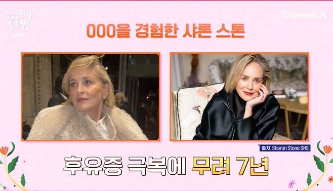 주인공은 샤론 스톤으로, 이를 들은 유민상과 황보라는 "샤론 스톤이 쓰러진 적 있다고?"라고 깜짝 놀랐다. 샤론스톤은 한 잡지사 인터뷰를 통해 이 질환의 투병 과정을 솔직하게 밝혔다고. 쓰러진 직후 상태가 심각해서 생존율이 1%에 불과하단 이야기를 들었고, 9일간 치료 끝에 생명을 건졌지만, 후유증이 심각한 게 문제였다. 샤론 스톤이 직접 밝힌 후유증은 "사물이 늘어져 있는 것처럼 보이고, 시야에 다른 색깔이 보였다. 언어 능력을 상실했고, 후각, 시각, 촉각 능력이 모두 사라졌다. 한쪽 다리의 감각도 상실했다"고 했다고.