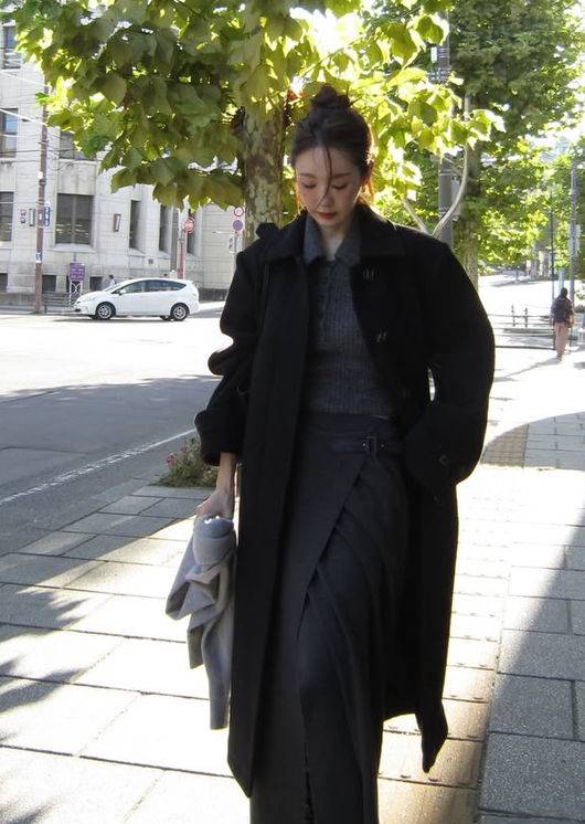 강민경은 가르마를 살짝 탄 채 업스타일로 머리를 틀어올려 깔끔하면서도 고풍스러운 느낌을 자아냈다. 강민경의 작은 얼굴과 긴 목이 헤어 스타일링을 더욱 뽐내고 있어, 겨울 코트의 따스한 느낌과도 아주 잘 어울리는 모습이었다.