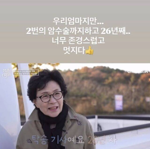 이어 '우리 엄마지만 두 번의 암 수술까지 하고 26년째. 너무 존경스럽고 멋지다'고 자랑했다.