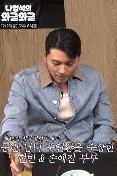이날 나영석 PD는 현빈에게 최근 청룡영화상 최초로 부부가 남녀주연상을 수상한 것을 언급했다. 나 PD는 "그런 거 너무 멋있다. 부부가 청룡영화상 갈 준비를 같이 해서 나가는 건가”라고 물었다. 이에 서은수가 대신 “숍이 다르다”라고 말했다.
