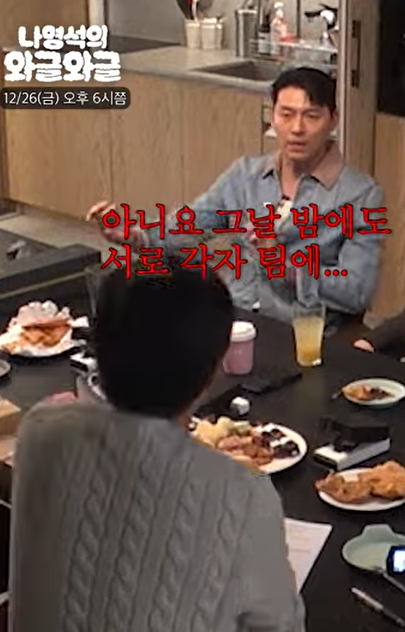 나 PD는 “그렇게 둘이 같이 상 타고 했는데도 집에 와 보면 ‘아직 안 왔네? 먼저 씻고 자야겠다’ 이런 현실 느낌인 건가”라고 물었고, 현빈은 “그런 거다. 그리고 다음날 각자 일하러. 현실로 다시 돌아가는 것”이라고 말했다. 이에 나영석 PD는 “별로다”라며 한숨을 쉬었다.