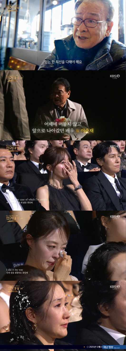 [OSEN=박근희 기자] '2025 KBS 연기대상’ 한국 연기계의 거목, 故 이순재를 기리는 특별한 추모의 시간이 마련되어 모두의 가슴을 먹먹하게 했다.