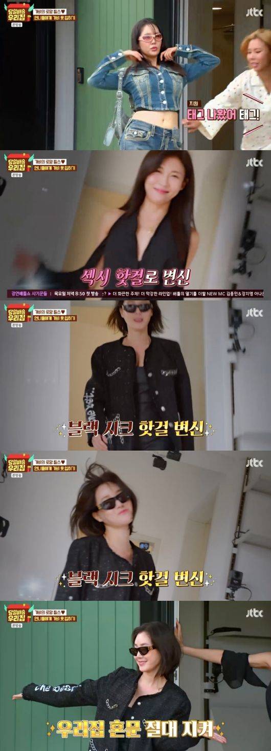 마지막으로 김성령의 차례. 김성령은 ‘핫걸’ 그 자체의 모습으로 등장했고, 장영란은 “언니가 하이라이트다. 이게 성령 언니다. 딱 언니 옷이다. 너무 예쁘다”라고 감탄했다. 가비의 옷을 입은 세 사람은 집 앞에서 모델 같은 포즈를 취했고 하지원은 “데뷔해야 하는 것 아니냐”라고 말했다.