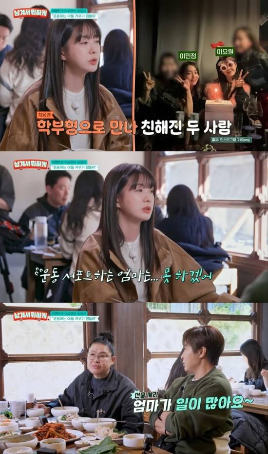 같은 아이스하키팀에서 운동을 했지만 지금은 농구만 시키고 있다고 덧붙인 이요원은 "(운동은) 본인이 좋아서 하는 거고, 저는 서포트만 해주는 거다"면서 "저는 운동을 못 시킬 것 같다. 서포트하는 엄마는 못할 것 같다"고 털어놨다.