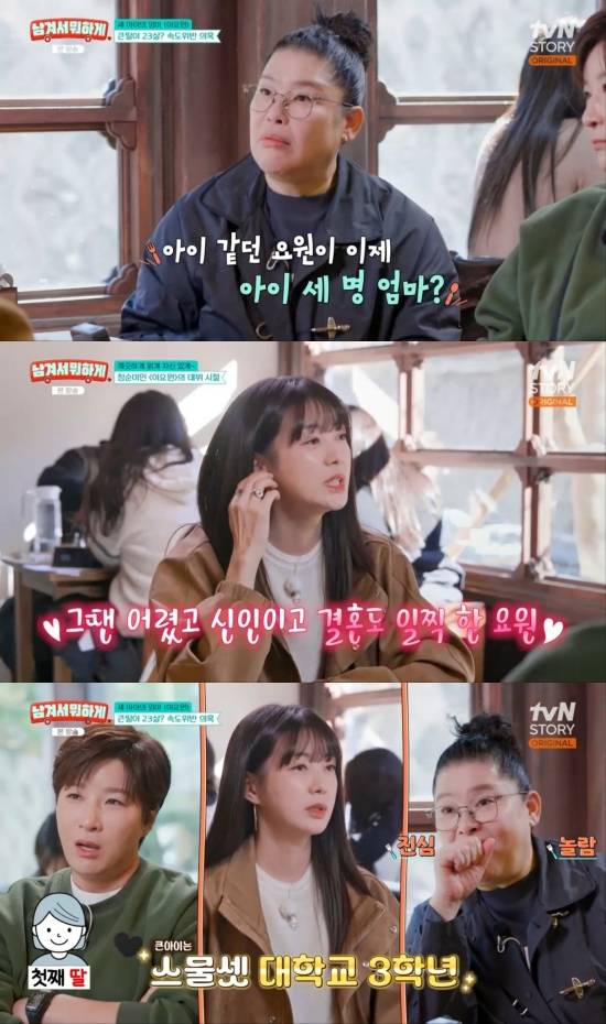 첫째 딸이 대학교 3학년이 됐다는 소식에 이영자는 "말이 돼?"라며 깜짝 놀랐고, 박세리는 역시 이요원의 동안에 놀라움을 표했다.