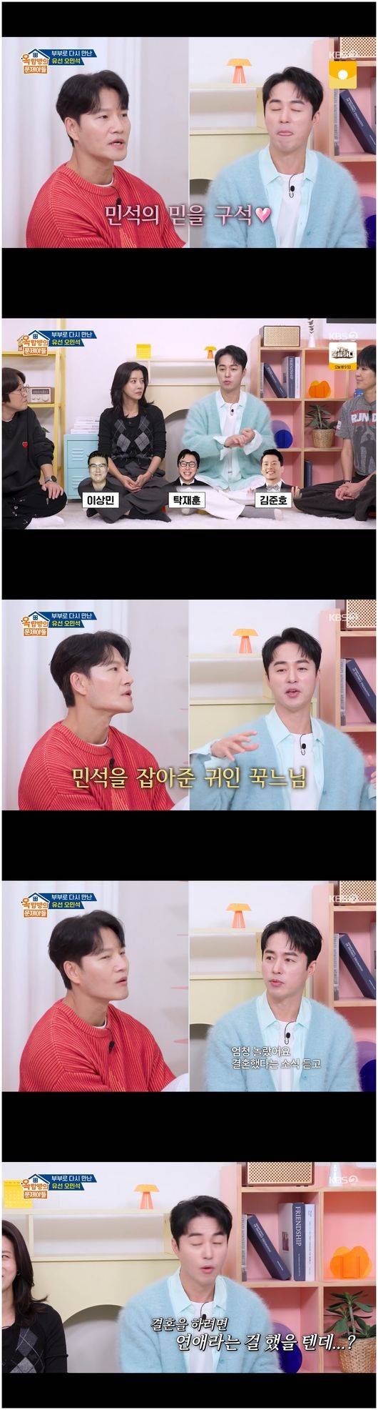 그러나 4년 만에 다시 만난 오민석과 김종국. 오민석은 결혼한 김종국을 신기하게 여겼다. 오민석은 “김종국이 결혼했다는 말을 듣고 정말 놀랐다. 옛날에는 방송 끝나면 운동하러 가고, 쉬면 운동하고, 아니면 아는 동생들이랑 축구를 하러 가고. 옆에 여자가 있을 틈이 없었다”라면서 “결혼을 하려면 연애를 하는 건데, 도대체 연애를 언제 한 걸까?”라고 물었다.