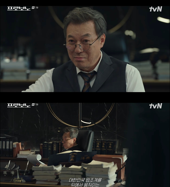 27일 방송된 tvN 토일드라마 ‘프로보노’ 7화에서는 오규장(김갑수)과 강다윗(정경호)이 처음으로 마주하는 장면이 그려졌다. 두 사람의 만남은 ‘프로보노’ 팀 존폐를 두고 이어진 내기로 번지며 분위기를 단숨에 팽팽하게 만들었다.