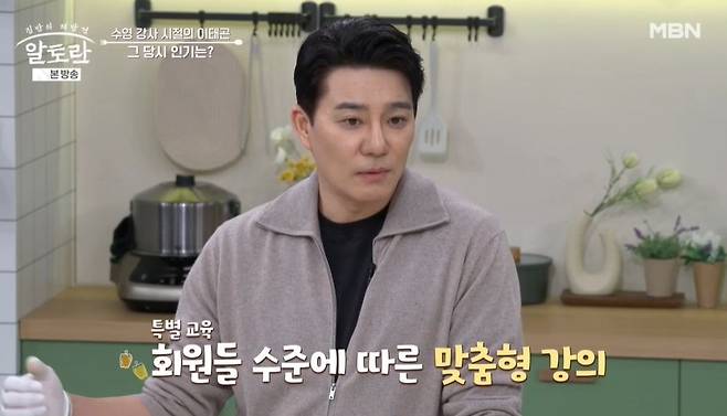 이태곤은 남녀 수강생 비율에 관해 "여성분들이 많았다"고 밝혔다. 수강생들에게 선물도 많이 받았다고. 이태곤은 "양주도 받고, 점심은 꽃등심이었다"라며 "당시 직업병이 소화가 안 되는 거였다. 본인이 수영을 잘 안 하고 (물속에 서 있느라) 장이 차가워졌다. 소화불량에 시달리니까 한의사 남편분이 한약을 주시고"라고 떠올렸다.