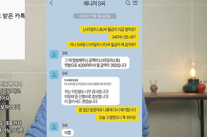 앞서 매니저 A씨는 당초 월급 500만 원을 약속받았으나, 300만 원대의 월급을 받았다고 주장했다. 또 4대 보험 가입을 요청했으나 묵살 당했다고 이야기한 바 있다.