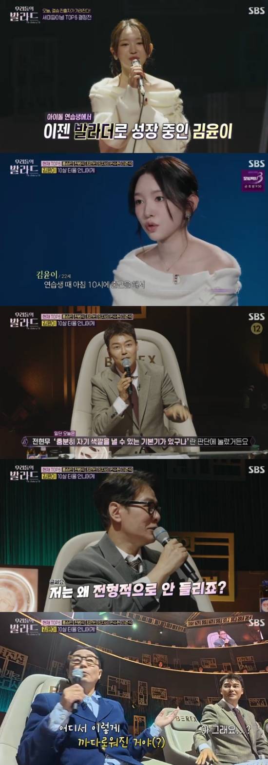 (엑스포츠뉴스 오수정 기자) '우리들의 발라드'에서 윤상이 SM에서 5년간 연습생 생활을 한 김윤이의 노래를 칭찬했다.