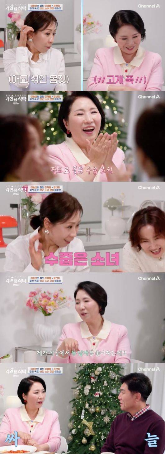 22일 방송된 채널A ‘절친 토큐멘터리 - 4인용식탁’(이하 4인용식탁)에는 상담가 이호선이 출연, 절친으로 아나운서 이재용, 코미디언 정선희를 초대하는 시간을 가졌다.